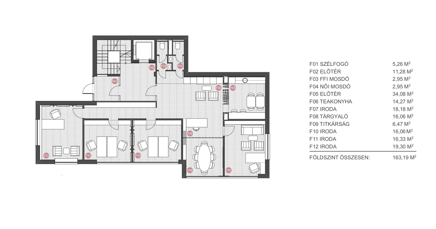 Az Irodaház építészeti megformálásánál törekedtünk az optimális benapozás és épületgeometria mellett a legmagasabb színvonalú műszaki és energetikai megoldások alkalmazására, így az irodaház energiaellátását korszerű hőszivattyús rendszerrel látjuk el.