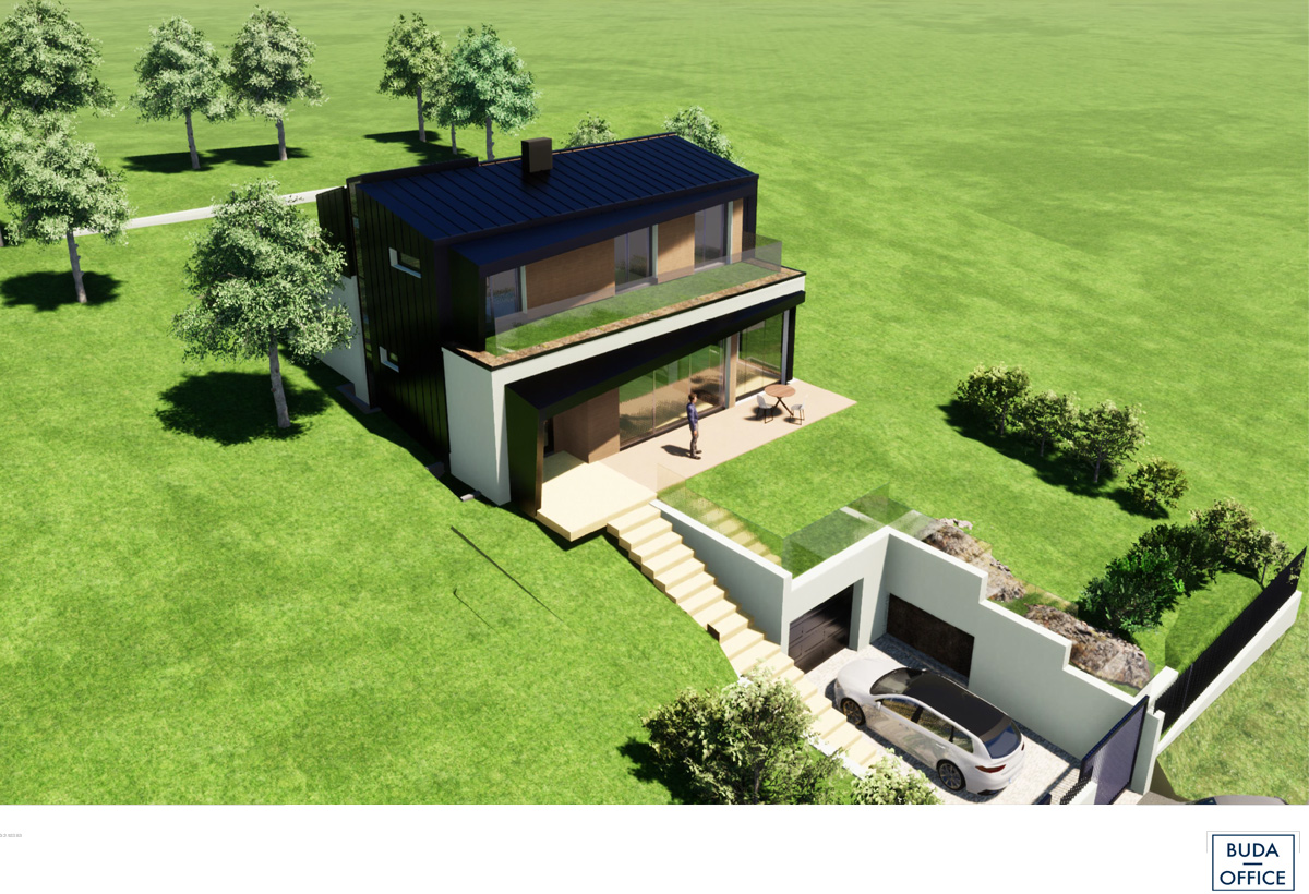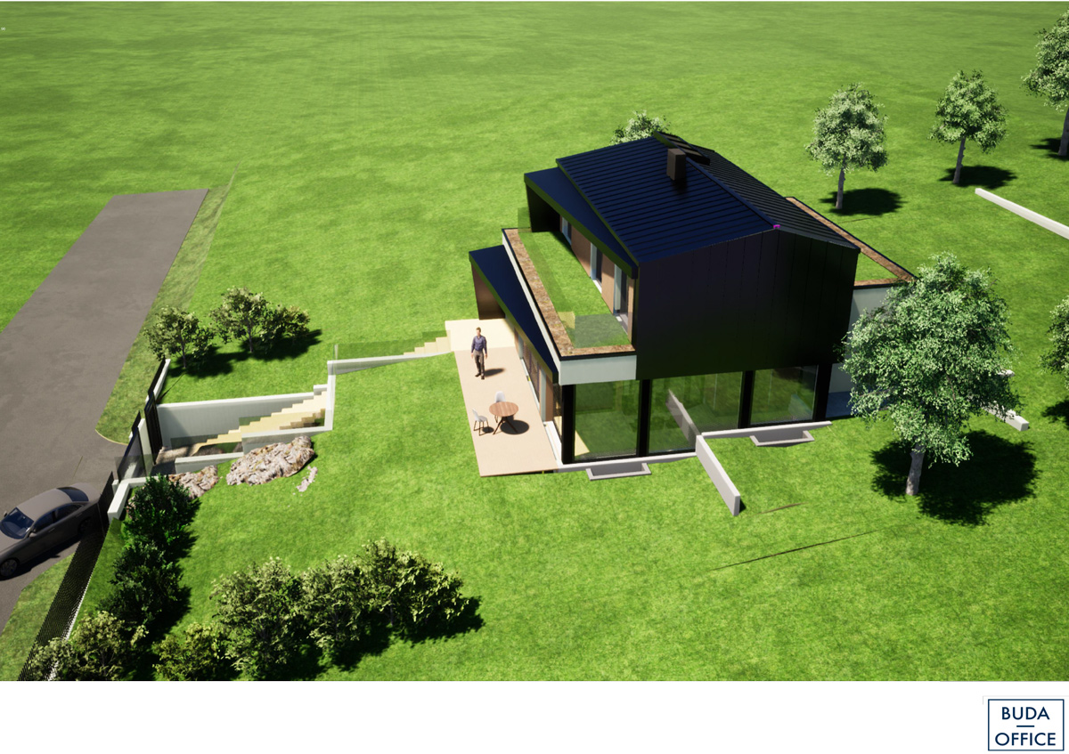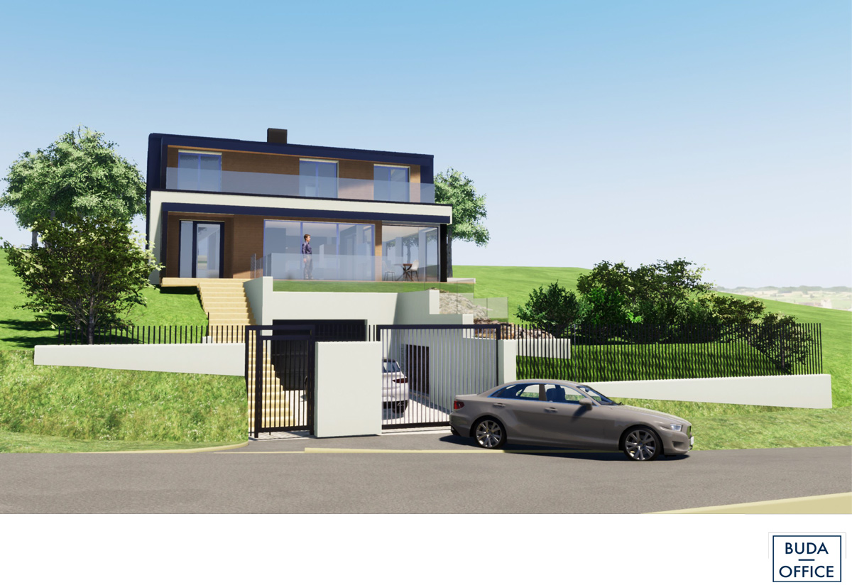Az egyedi tervezésű épület szándékaink szerint minőségi építészeti értéket jelent. Az épületet úgy terveztük meg, hogy mind saját használatra, mind bérbeadásra kiválóan alkalmas legyen. Az épület a tereplejtést jól kihasználva szinteltolással épült meg, ami ezáltal tökéletesen illeszkedik a terephez, a kerthez. Az épület déli tájolású és a földszinten is kiváló panorámával rendelkezik a Budai hegyekre.